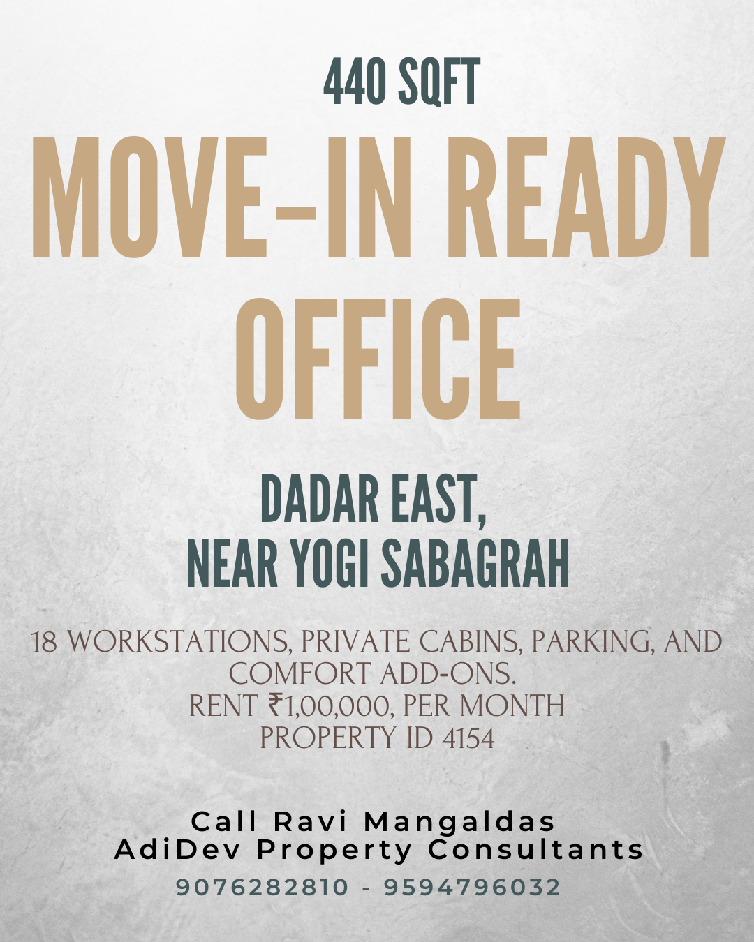Prime furnished office space available for rent in the heart of Dadar East โ ideal for startups, consultants, real estate firms, or professional offices.